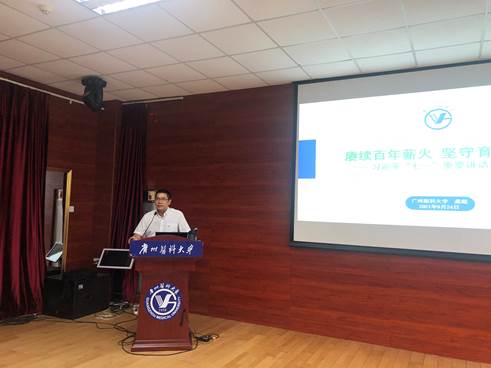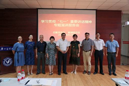 2021年9月24日下午,后勤党总支联合教辅党总支在番禺校区教师教学发展中心召开学习习近平同志“七一”讲话专题辅导讲座,讲座由教辅党总支书记尹梅主持,学校马克思主义学院教授龚超主讲,后勤党总支和教辅党总支全体党员和入党积极分子参加。