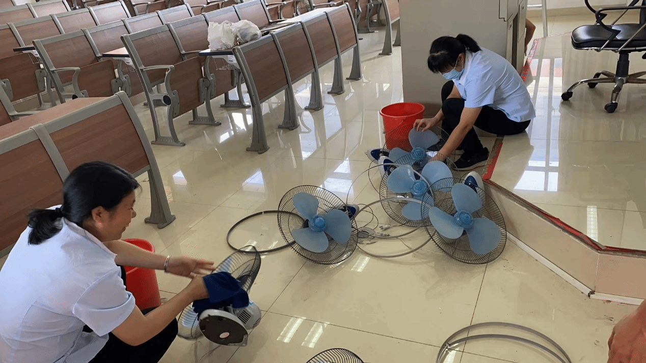 动员仪式结束后,后勤校产管理处全体人员及物业工作人员对教学区、宿舍区等区域的开展卫生清洁,并对公共场所的栏杆、门把手及地面等进行全面消毒。通过爱国卫生运动的开展,对学校师生积极参与其中起了积极引导作用,营造了良好的校园生活环境,为迎接2023年秋季学期开学做好充分准备。
