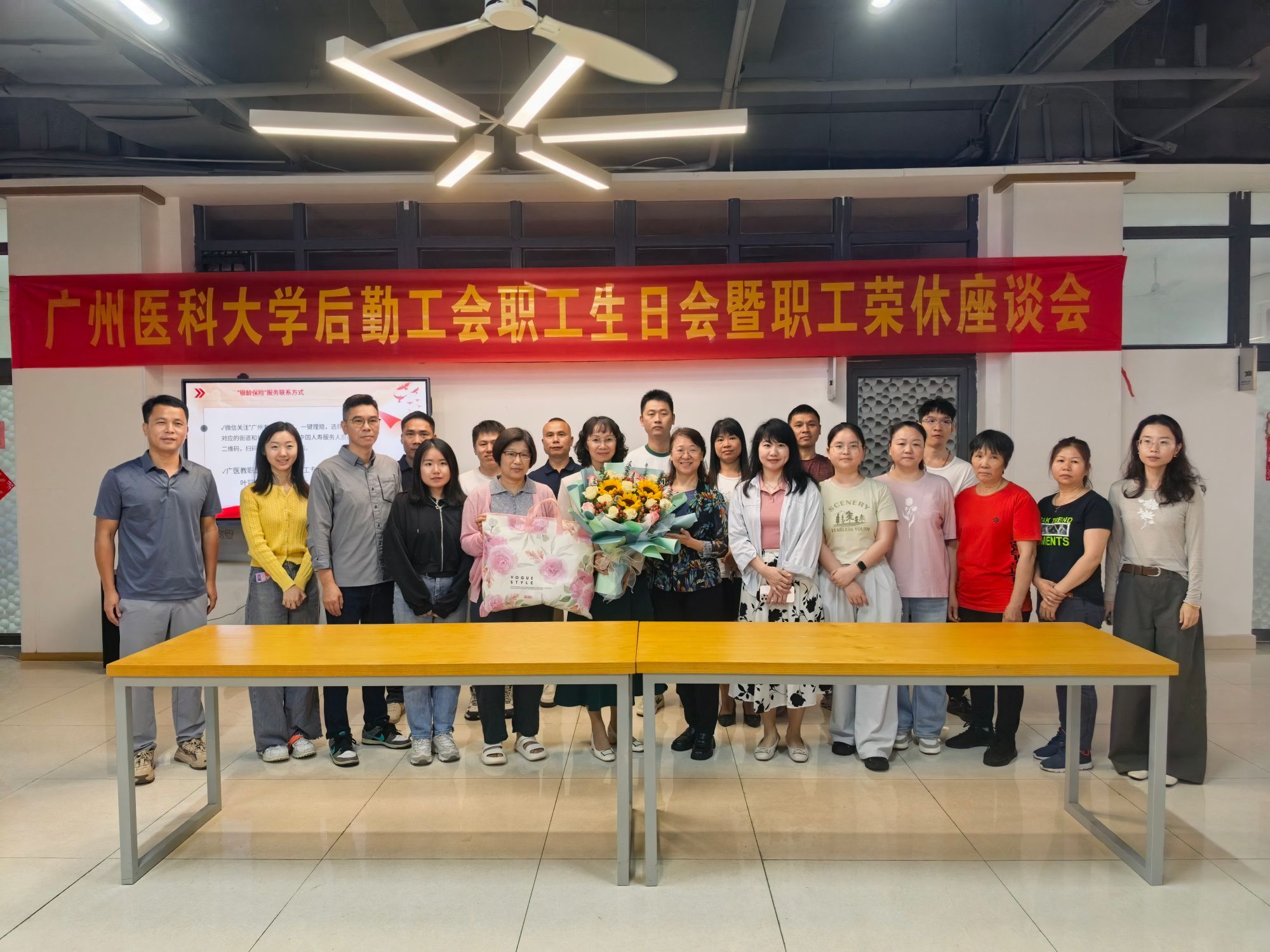 活动最后,全体人员合影留念,定格温暖瞬间。此次生日会与荣休会的举办,是后勤工会落实人文关怀、提升职工幸福感的具体举措,既增强了后勤队伍的凝聚力与向心力,也进一步营造了关爱职工、感恩奉献的良好氛围。