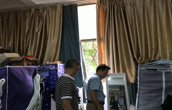 朱惠彬科长与办公室人员跟进落实窗帘安装情况