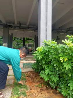 教学区旁人员过往密集地方配合学校施工做好绿植补种